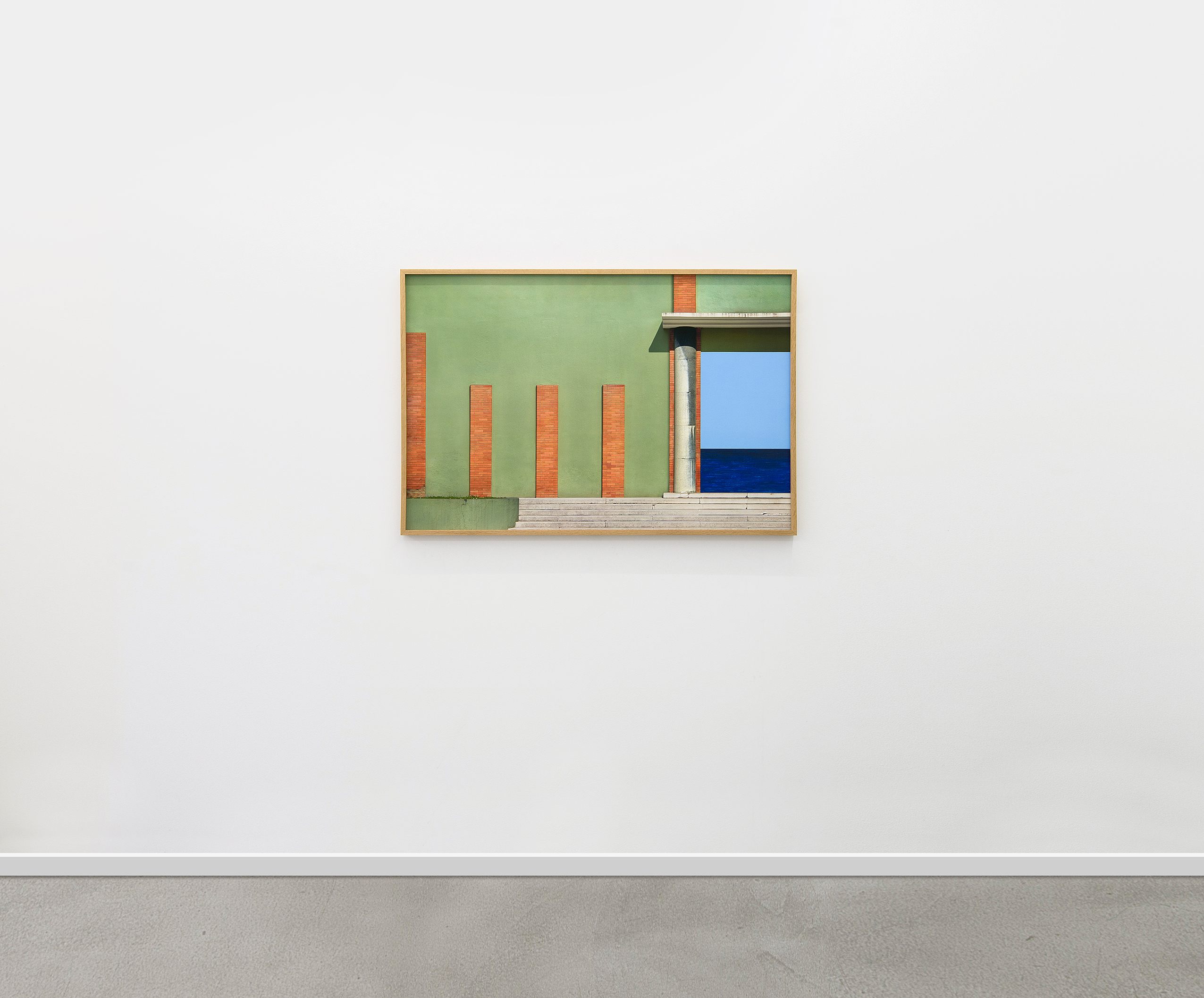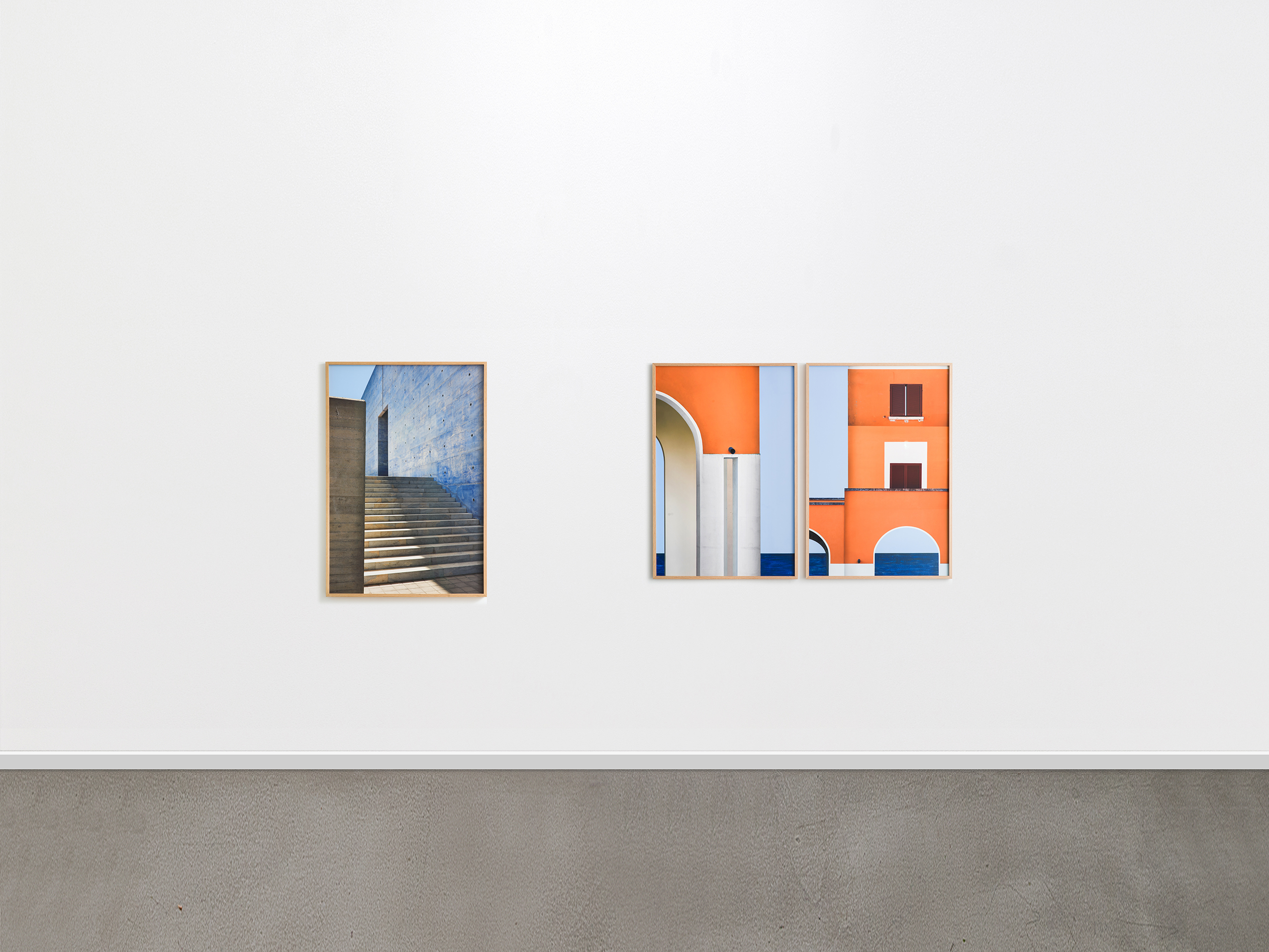 Concernant le travail sur Tresigallo, une direction différente mais spéculaire se développe. Ici, Montesi s’intéresse à l’architecture rationaliste dans un espace urbain conçu selon des principes d’ordre, de symétrie et de contrôle formel. De manière similaire, les images sont construites à partir de géométries essentielles, d'horizons mesurés et d'une utilisation rigoureuse de la lumière, qui définit les volumes et les surfaces avec une précision presque analytique. Aussi, Montesi s’attache à montrer la dimension mystérieuse de cette architecture. Tresigallo apparaît ainsi comme une ville suspendue et silencieuse, imprégnée d’un sentiment d’immobilité temporelle. Ce caractère fait écho à la peinture métaphysique, en particulier celle de Giorgio de Chirico et de Carlo Carrà, où l’architecture devient un lieu symbolique dépourvu de présence humaine.